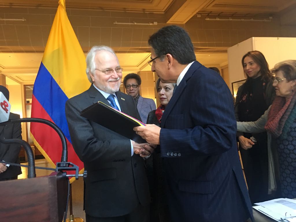 La entrega se efectuó durante concentración de mandatarios elegidos, que convocó el Mandatario Nacional, no para atender el clamor unánime de los Colombianos por numerosos procesos gubernamentales conciderados perjudiciales a intereses de la sociedad, sino para tratar de ocultar esa protesta exterioriza da el 21 de noviembre.