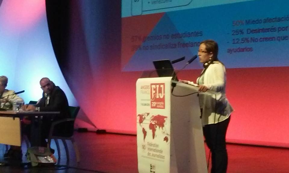 En el pre-congreso, Adriana Hurtado intervino como ponente en la conferencia “Desafío del cambio: organizando a los periodistas jóvenes en el cambiante entorno de los medios”, e informó que América Latina tiene la tasa más alta de sindicalismo adulto mayor (El 51% de sindicalistas superan 51 años), describió la situación del periodismo en Colombia e indicó que los jóvenes periodistas de la región sienten miedo de ingresar a los sindicatos por temor a afectación de sus perspectivas laborales.